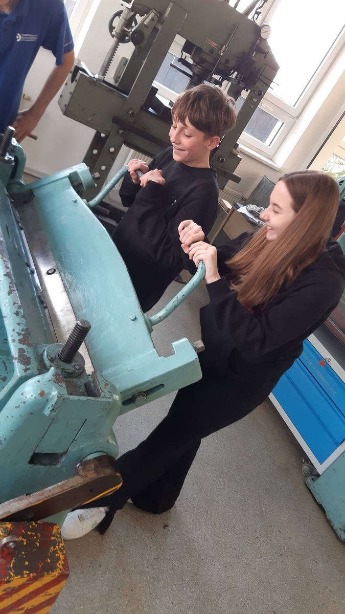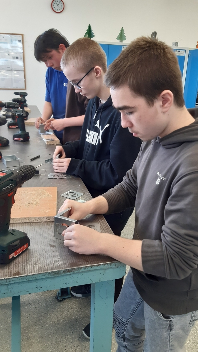 Ve čtvrtek 20. dubna 2023 jsme s osmáky zavítali do Střední průmyslové školy polytechnické – Centra odborné přípravy Zlín. Žáci rozdělení do tří skupin strávili dopoledne u elektrikářů, strojařů a grafiků. Prohlédli si učebny určené pro výuku elekto oborů Mechanik elektrotechnik a Elektrikář – silnoproud, prostory, kde je realizována praktická část výuky polygrafických oborů Reprodukční grafik pro média, Knihař a Tiskař na polygrafických strojích a dílny strojírenských oborů Mechanik seřizovač, Obráběč kovů a Strojní mechanik. Pedagogové školy nás seznámili s náplní jejich práce. Tentokrát pro nás měli nachystánu ukázku programování a práce na CNC strojích. V jedné skupině si žáci vyzkoušeli montáž plechové lucerny, v druhé práci s mikropájkou při letování jednoduché blikačky podle nakresleného schématu. Zvládli dle instrukcí zapojit i schodišťový vypínač. U grafiků pracovali s papírem, vytvořili si návrh svého loga a vyrobili butony.