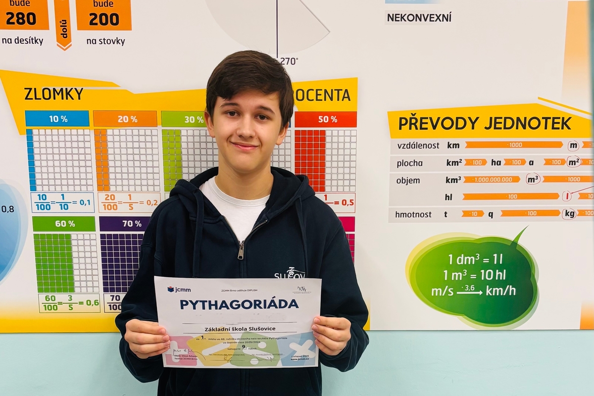 Žák naší školy zvítězil v okresním kole matematické soutěže.